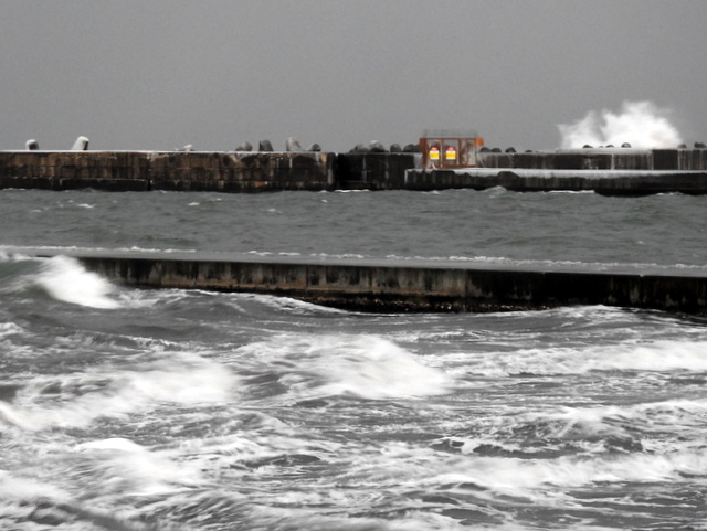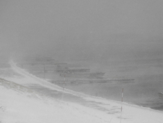 これではさすがのトドたちも跳び上がれない。海は荒れ気味。