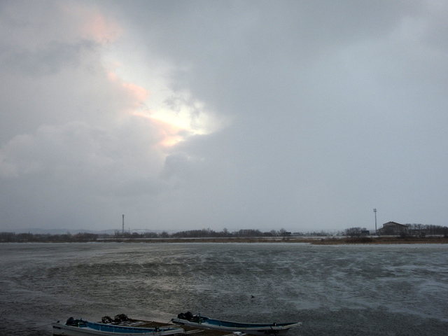 仕方がないので覗きに行ってみた。途中の茨戸川は白,なおも白。