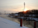 f (今年)昨日(3/14),左岸堤防はまだ雪に覆われて歩きにくそう。距離は長いが,右岸のゲートから川沿いに歩く。