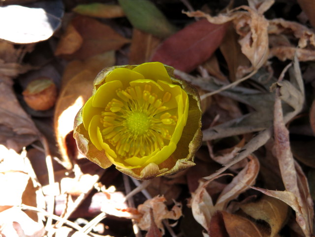 彼岸花一昨日ツボミを見つけた福寿草。早速の開花です。