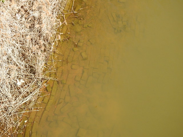 (b) は東屋の手前。いまなお護岸の役割をしっかり果たしていると思われ,"遺構"というには忍びない。