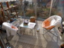 今朝は寒かった。最低気温マイナス5℃以下。最高もマイナスで真冬日。カフェのシーグラスに張った水はカチンカチンに凍り,上に石っころをのせても沈みません。寒さは数日続きそう。