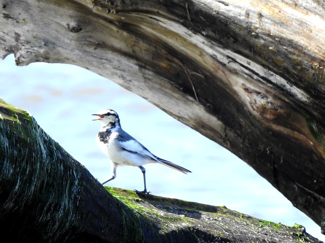 3,4分後,少し離れて下から自分の開けた大きい穴に見惚れていました(b)。