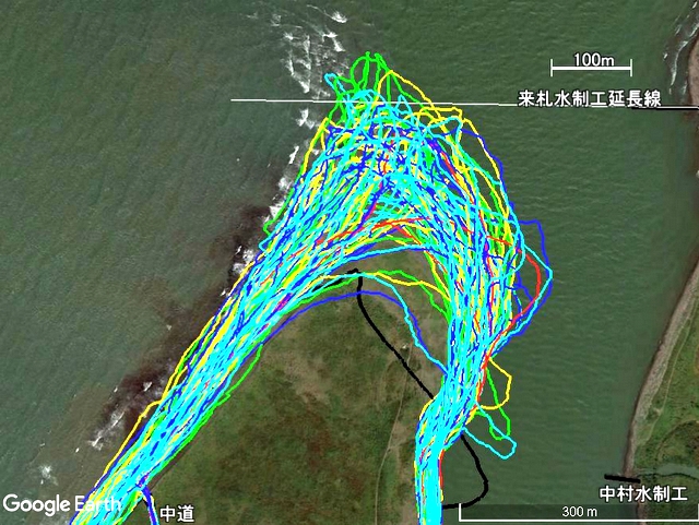 と同時に,知津狩川自身の河口の形状も来るたびに微妙に,あるいは激しく変化して興味深い。