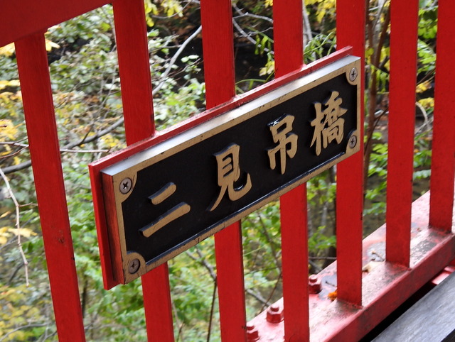 人道吊橋といえばもうひとつ,月見橋の上流に観光名所となっている二見吊橋があるが,観光客が多くて情けない写真しか撮れなかった。