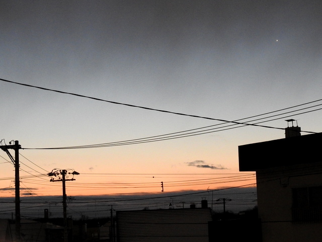 翌12/14早朝(つまり今朝),たまたまの雲の切れ目の西の空に1ケだけ流れ星目撃。写真は撮れず。