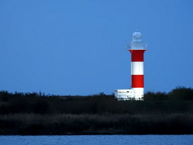 上の左4枚はほぼ同じアングルで砂嘴の先端を捉えたもので,旗の真下より向かってやや左に管理道路の先端(行き止まり)がある。