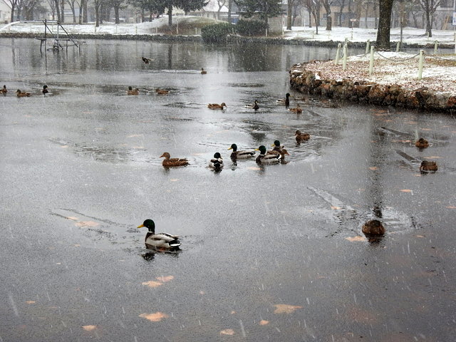 今日12/10も紅葉山公園でカモたちと遊んできたが,同じカモの仲間とは信じがたい。