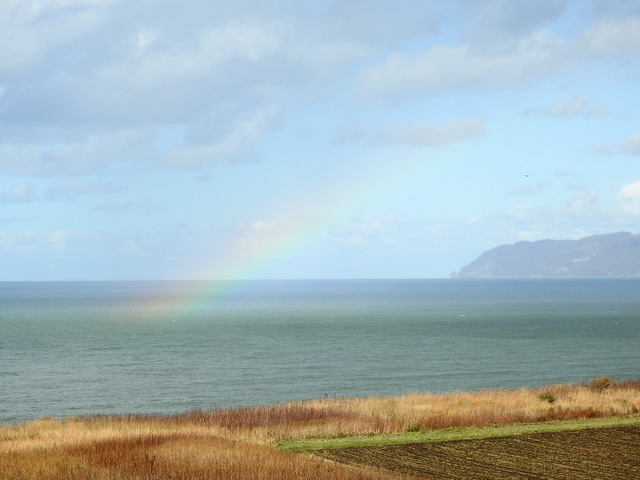 (b) 石狩灯台をさまざまな角度から撮り続けている。が,虹とのコラボはこれが初めて。