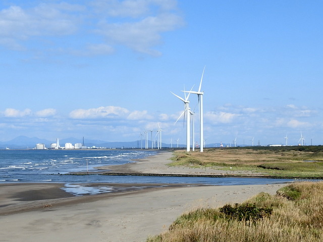 一方私が上の写真を撮る地点は,知津狩新橋から左岸下流方向に堤防上を約300m進んだ海際。方向は反対だがどっちにしろ合わせて600mほどしか離れていない。クマにしてみればひとっ跳びに違いない。