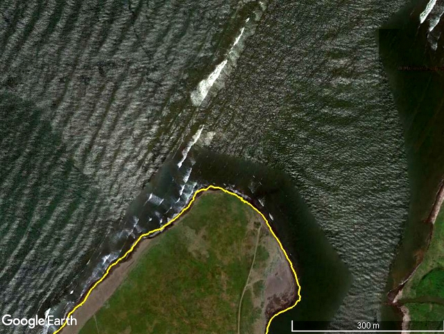 bいつものことだけど,ふと気づくと Google earth の背景画像(砂嘴先端部)が変更されていた。今までの画像は 2018.09.20 取得のもので,新しい画像は 2020.06.13 取得。