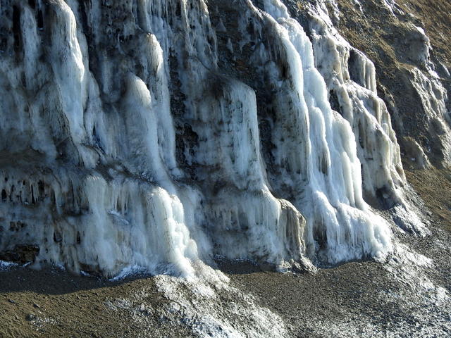 (a) 中道突き当り近くのモンスター。やはり波打際にあって波の飛沫を受け氷を纏っている。