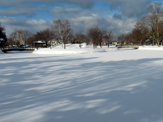 c今年初めての紅葉山公園。膝まで埋まりながら池をひとまわり。前回大晦日の朝には気づかなかったのだが,ここにもモンスターが。