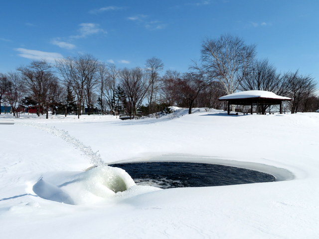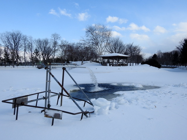池の全面凍結を避けるための循環放水の落とし子というわけだ。