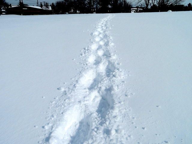 カンジキで歩くのはとにかく体力を消耗する(もちろん,深雪を長靴だけで歩くのはもっとシンドくて死ぬ思いだ)。