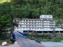 (F) ホテル層雲・本館別館渡り廊下。<実は下の彩雲橋より上流> (-1)は昨年9/9。渡り廊下の撤去作業中。そして(-2)は今年9/13。跡形もない。