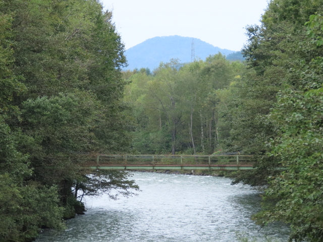 (D) 菊水10線の吊橋。今年は寄らなかったので(-1)は昨年9/9。今年は200mほど上流に新設された菊水新橋から望む(-2)。