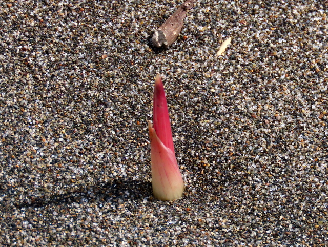 (D) 4/5 はまなすの丘でのハマボウフウの芽です。美味しそうですけど採ってはいけません。