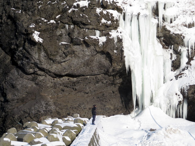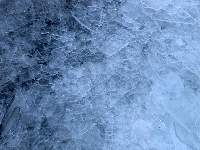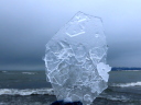 先端の岸辺では敷き詰められた氷片の上を恐る恐る歩く。その1枚を拾い上げてみた。
