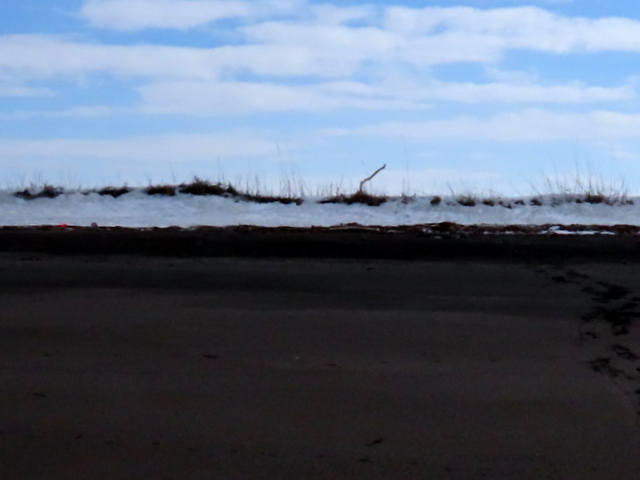 春の鳥といえば,石狩浜ではノゴマとかノビタキですが,4月の初めでは彼らはまだ現われていないようです。
