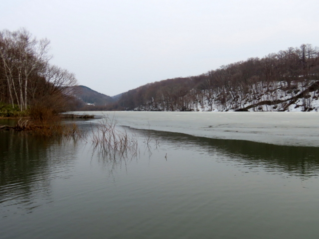 4/13/11には無謀な人が池の上に足跡を残していたが,3/27にはまだ雪氷に覆われているとはいえ無謀な人でも足跡を残すことはできなかったようだ。