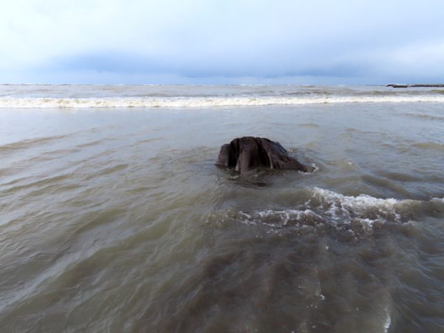 (h) 第三突堤。潮位はやや高めなのだが,荒れた海面が上下するので時に大きく姿を表す。第一突堤は隠れたまま。