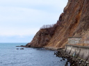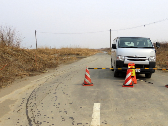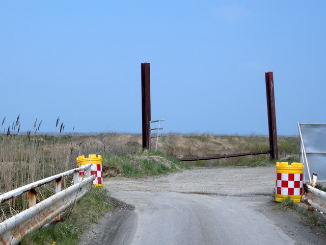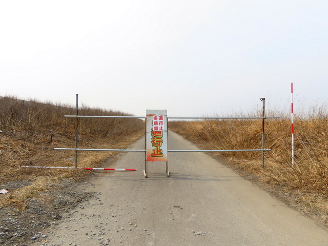 (c) 海岸通りを快調に走ってあそびーちに出る寸前,通せんぼ。反対側から撮る。まだ冬期間だって。なんなのさっ!やむなく引き返す。