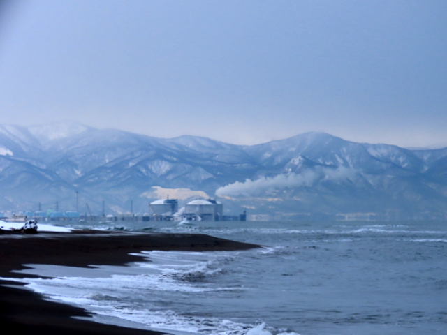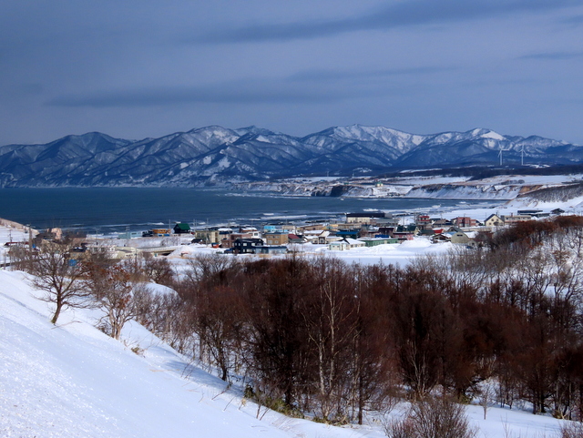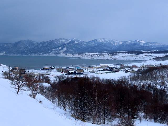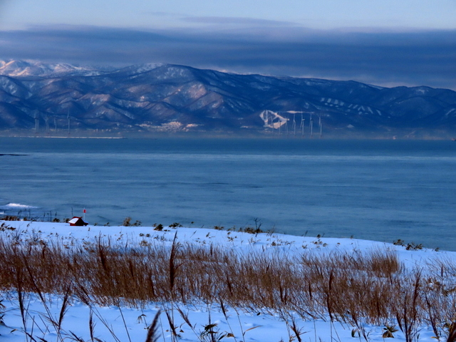 (b) は,青島,小谷方向を,厚田道の駅3階展望デッキから眺めました。もっと近くの別狩からの眺めはこちら。いずれにしても1/28の初群来と位置的にはほとんど変わらず,規模は若干小さいものでした。