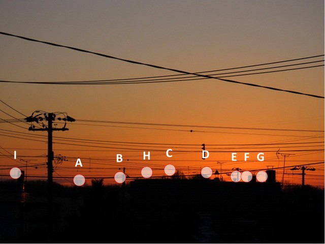 今回も,1/20版の”c図”に書き加えたものが(b)。I点が今日の日の出ポイント。目いっぱい画面の左翼までいってしまったのでこの画像はもう使えないか・・・
