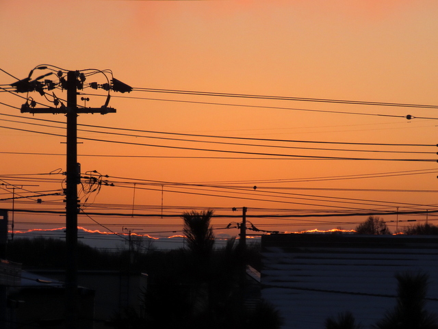 そんな老人の執念を嘲笑うかのように,前回(2/22)以降今日(3/11)までの17日間,一度たりとも奇麗な朝陽が昇る日はなかった。上空はほとんど晴れてはいても必ずや低空に叢雲。それを抜けてやっと顔を出すので,最初にまん丸顔を出した瞬間を捉えることができない。
