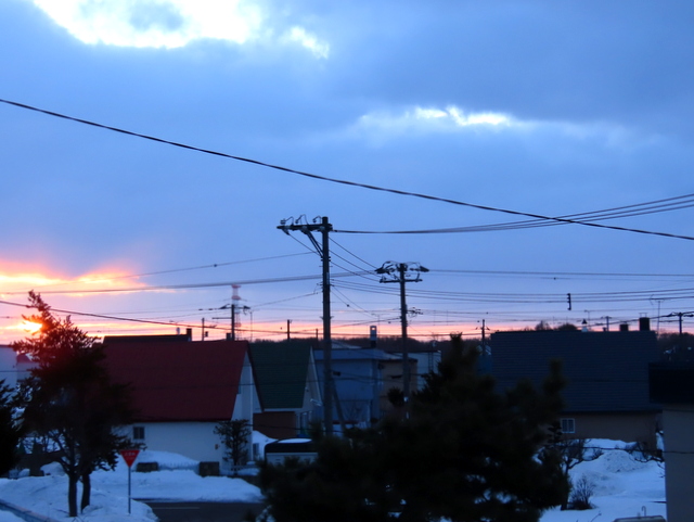 e (12:39)(a,b,c) まず今朝(1/20)のこと。1/7は茨戸川にに走ったため,自分ちからの今年初めてのくっきりとした朝陽。