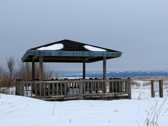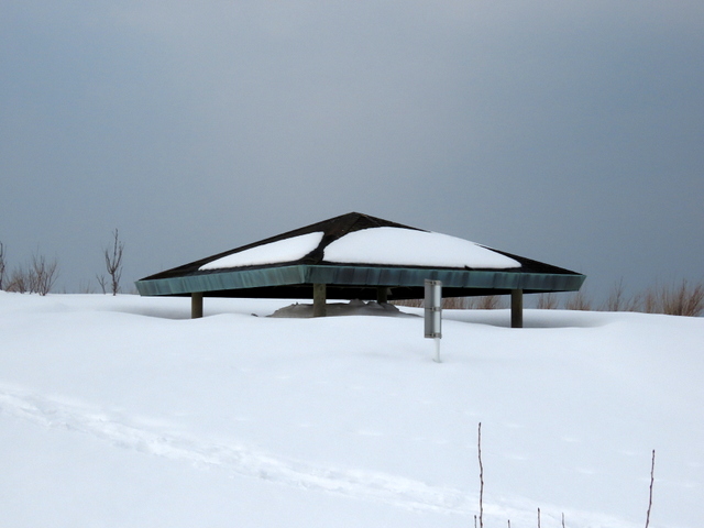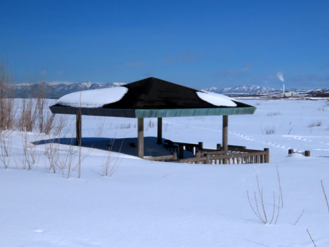 はまなすの丘のちょうど中ほどにひと休み用?のあずまやがあるが,最近6年の2月中ほどのあずまや風景を並べてみた。眺める角度がそれぞれで微妙に違うことを考慮に入れても,わーーーおっ!積雪が年ごとに減っているっ!と思ってしまうかもしれない。