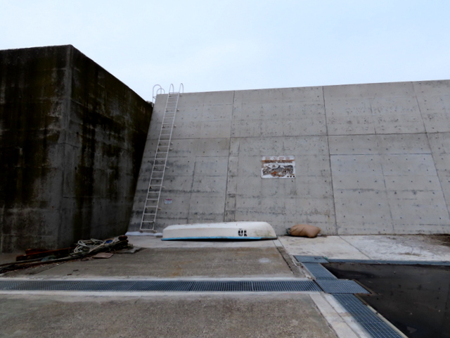 (c) 河口導流堤方向には現在と同様ゲートが立っていて進入禁止。