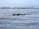 云うまでもありませんが,ニシンたちの産卵はヒトの目で群来と確認された時にのみ行われるとは限りません。潮汐,波浪,天候状況次第で彼らの気の向くままできる限り浅瀬に近づき産卵/放精が行われます。ですから規模によってはその都度海面がいかにも群来っぽく白濁するとは限りません。ちょっと白いんじゃない?けど群来と呼ぶにはねぇ,,,くらいな時でもニシンたちは集まってきていると考えられます。そうしたニシンたちを見逃さないのが海獣・トドとかアザラシたちです。