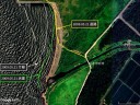 (E) ここに,イメージオーバーレイ機能を用いて先のC図の画像ファイルからイメージを上乗せする。最初はとんでもない位置に,とんでもない大きさ,角度で乗っかることなるかもしれない。イメージオーバーレイ機能には,上乗せした画像を,移動/縮小拡大/回転する機能が備わっているので,それらを用いて,道路,川,海岸線,工作物など整合性に納得がいくまで操作する。