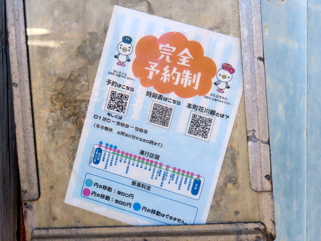(F) 4/9 本町のバス停。あらら,中央バスだった筈なのに・・・そうか昨年12月で中央バス石狩線は廃止になったのだ。12/15から運行開始されたデマンド交通「いつも」が同じ停留所を使っているというわけですね。完全予約制ということです。