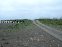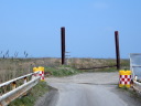 (d) ですが,ゲートの脇の知津狩川右岸堤防の急な法面に車両が通行可能なけもの道あり。