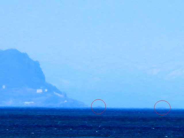 (E) 4/9 高島岬沖のドケチな蜃気楼です。この日の最高気温は17度の予報。風向きもいいしもしかしたらと,定番の海岸線SP-1600ポイントに向かいました。11時ちょっと過ぎ。南東の風ながらやや強すぎ。遠景も霞んで積丹半島などまるで見えません。