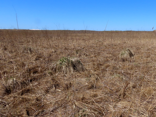 (d) 昨年5/3版以来の谷地坊主。前回(4/5),前々回(3/13)はあずまやを過ぎて石狩川の川岸に出てしまったため,谷地坊主には今年初対面。雪解水(ゆきげみず)の中に佇む谷地坊主との出逢いはありませんでした。近くで出会ったのはまたまたヒバリ。冠羽を立ててないから雌なのかな?とも云い切れないみたい。